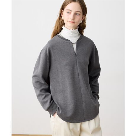[型番:291192]抜け感ときちんと感を両立する、大人のハーフジップトップスほどよい厚みとハリ感のあるダンボール素材を使用したハーフジッププルオーバー。シンプルなデザインにジップディテールを効かせることで、着こなしに自然なアクセントをプラスします。インナーにカットソーを重ね、ジップを開けてレイヤードを楽しむ着こなしもおすすめです。