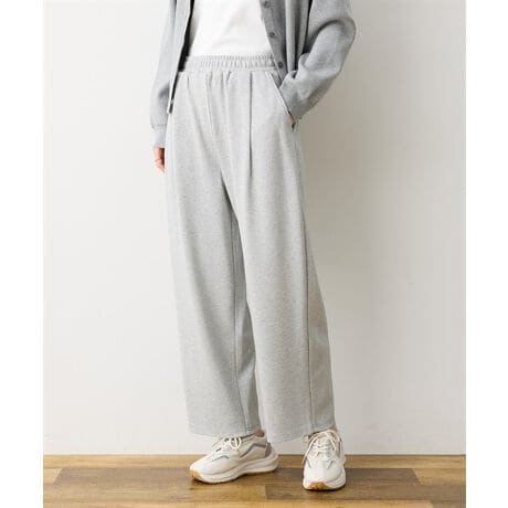 [型番:294140]さりげないラメで差がつく、大人のタックパンツ程よいハリ感のあるラメ入りダンボール素材を使用したタックパンツ。ウエストはゴム仕様でリラックスした穿き心地ながら、フロントタックが縦ラインを強調し、すっきりとした印象に。シンプルニットとフラットシューズで、抜け感のある大人カジュアルスタイルを楽しめます。