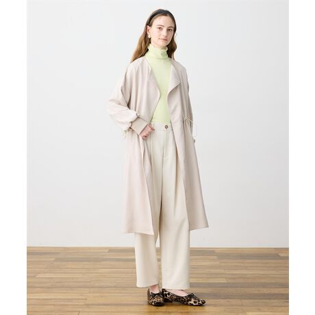 [型番:295107]羽織るだけで、朝の装いが整う程よくゆとりのあるサイズ感と、動きやすい袖デザインでストレスフリーなノーカラーコート。すっきりとした首元と縦ラインを強調するシルエットで、自然にきれいめな印象を演出します。通勤からお出かけまで幅広く使え、季節の変わり目にも活躍する一着です。