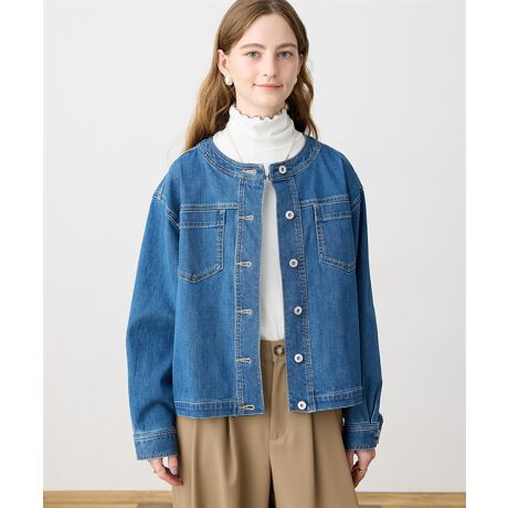 [型番:295108]気負わず羽織れて、今っぽく整う大人のためのGジャン程よくゆとりのあるシルエットに、ノーカラーデザインで抜け感をプラスしたGジャン。デニム特有のカジュアルさを抑え、きれいめにもなじむバランスに仕上げました。シアートップスをインナーにして、素材感のコントラストを楽しむ着こなしもおすすめ。