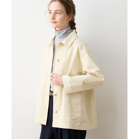 [型番:295109]さっと羽織れて、きちんと決まる大人の一枚シンプルなデザインで着回し力の高いカバーオール。フロントのボタンと大きめのポケットが程よいアクセントとなり、実用性にも配慮したデザインです。パンツにもスカートにも合わせやすく、季節の変わり目の軽アウターとして活躍。デイリー使いからきれいめカジュアルまで幅広く対応できる万能アイテムです。