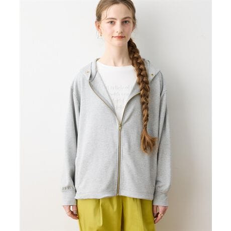 [型番:295111]さりげないラメで、いつものカジュアルを品よくアップデートほどよいハリ感のあるダンボール素材に、繊細なラメを効かせたZIPパーカー。軽やかな着心地ながら立体感のあるシルエットで、羽織るだけでこなれた印象に。裾のドロストでバランス調整ができ、パンツにもスカートにも合わせやすい万能アイテムです。