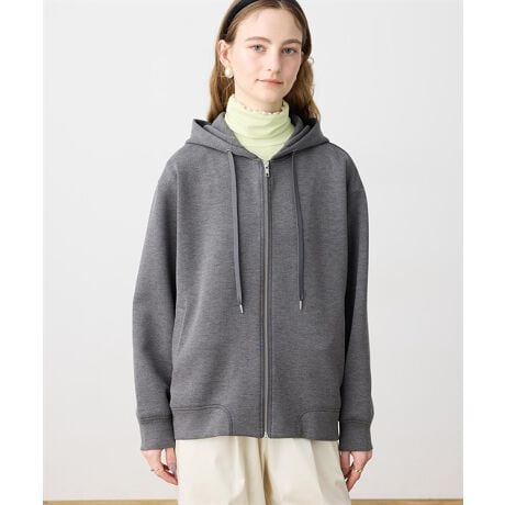 [型番:295112]きれいめに着られる、大人のためのZIPパーカー程よいハリと膨らみのあるダンボール素材を使用したZIPパーカー。カジュアルになりすぎない上品な表情で、羽織るだけでこなれた印象に仕上がります。フロントZIP仕様で着脱しやすく、パンツにもスカートにも合わせやすい万能アイテムです。