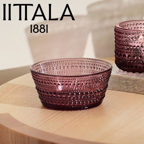 カステヘルミはフィンランド語で「露のしずく」という意味。朝日を浴びて、まるで連なる真珠のようにきらめく朝露にインスピレーションを得てデザインされました。温かみのある色でありながら、クールさを備えたナチュラルなくすみカラー。可愛らしいコーディネートにも、モノトーンのシックなテーブルの差し色としても活躍します。朝日を浴びて、まるで連なる真珠のようにきらめく朝露にインスピレーションを得てデザインされました。連なるガラスのしずくのようなデコレーションは、当初は製造過程で残った接合部を隠すためのアイデアでしたが、デザイナーのオイバ・トイッカはこれをとても気に入り、全体にあしらわれることになりました。それが結果的に、輝くガラスの美しさを際立たせています。
