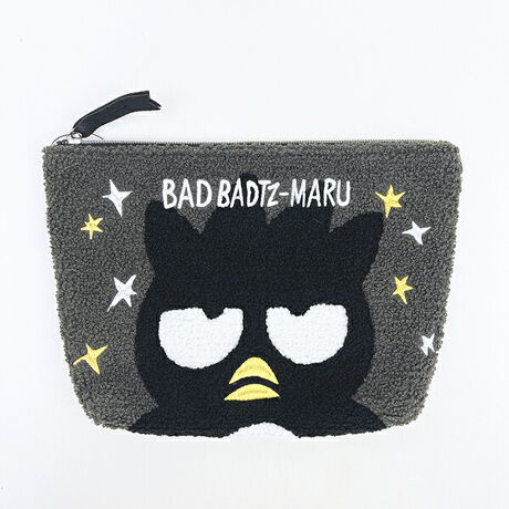 もこもこな手触りのバットばつ丸のさがらポーチです。コスメを入れたり、小物を入れたり、ペンなどを入れたりできる♪キャラクターは刺?デザインで立体感◎推し活用のグッズいれにもお使いいただけます♪