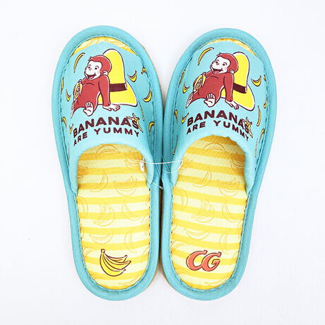 おさるのジョージのスリッパです。キッチン用にはもちろん、お部屋用にも◎つま先があいているのでオールシーズン快適にお使いいただけます♪ソフトな履き心地が◎とっても可愛いキャラクターと一緒におうち時間をお楽しみください☆彡【適応サイズ:22cm〜24cm】