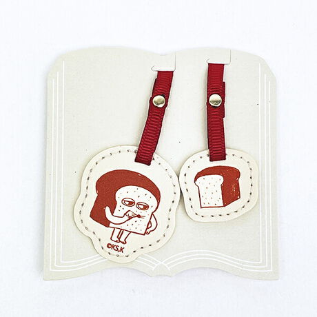 『パンどろぼう』の世界観を大切にして絵本の魅力がつまったレザー素材のブックマーカーです。おしゃれでギフトにもおすすめです♪【サイズ:大H3.3cm×W3.7cm/小H2.5cm×2.3cm】