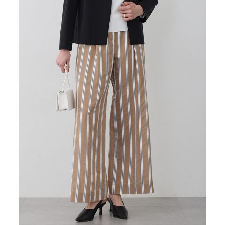 ■デザイン縦長のラインを強調し、すっきりとした印象を与える主役級のデザインパンツです。ボトムスだからこそ挑戦しやすい、立体感のあるストライプ柄をパンツに落とし込みました。ウエスト周りにはタックを施し、ゆとりのあるワイドシルエットながらも洗練された大人の雰囲気を演出。シンプルなニットやブラウスと合わせるだけでサマになり、トレンチコートなどの春アウターから裾を覗かせるスタイリングもおすすめです。