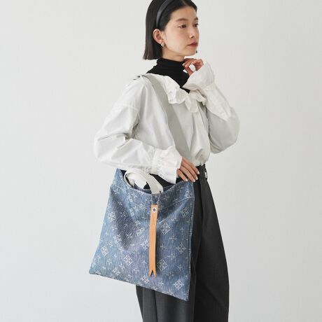 デニム調ジャガードの表情が印象的な、ビッグサイズの2WAYトートバッグ。