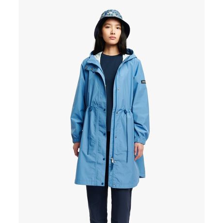 美しいシルエットを生み出すウエストの調節機能、トレンチコートのディテールを取り入れた背面のヨークデザイン、そして丸みを帯びた裾がエレガントさを演出します。ウォーキングやサイクリングでも、快適に過ごせます。
