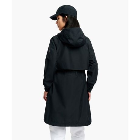 美しいシルエットを生み出すウエストの調節機能、トレンチコートのディテールを取り入れた背面のヨークデザイン、そして丸みを帯びた裾がエレガントさを演出します。ウォーキングやサイクリングでも、快適に過ごせます。