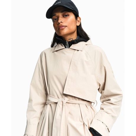 トレンド感のあるデザインで、クラシックなトレンチコートを現代的に再解釈し、スタイリッシュに雨の日を楽しめる一着です。