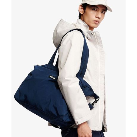 リサイクルポリエステルを使用した、パッカブル仕様のラージトートバッグで、スタイリッシュでエコフレンドリーな毎日を。容量は25リットルで、撥水加工が施され、メインルームには背面にPCポケット、両サイドのドローストリングでフィット感を調節できます。トートバッグとしても、取り外し可能なストラップでショルダーバッグとしても使える万能なバッグです。コンパクトに収納できるので、旅行のサブバッグとしても活躍。