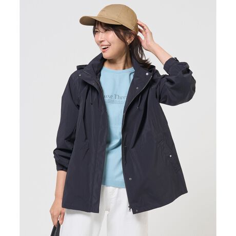 ■素材非常に細いポリエステル糸を緻密に織り上げた、マイクロタッチコンパクトタフタ素材を使用。縦方向の糸には細く丈夫なポリエステルを、横方向の糸には、ナイロンとポリエステルが混ざった東レの特殊な繊維「アーティローザ」を使用しており、非常になめらかな肌触りになっています。さらに、小松マテーレ独自の「テクノロジービンテージBJ」という特殊な加工を施すことで、生地全体が引き締まり、パウダーをまとったような、さらっとした心地よいタッチを実現しました。小雨程度の水滴を弾く、撥水加工もされているため、ファッション性と実用性を兼ね備えた素材です。