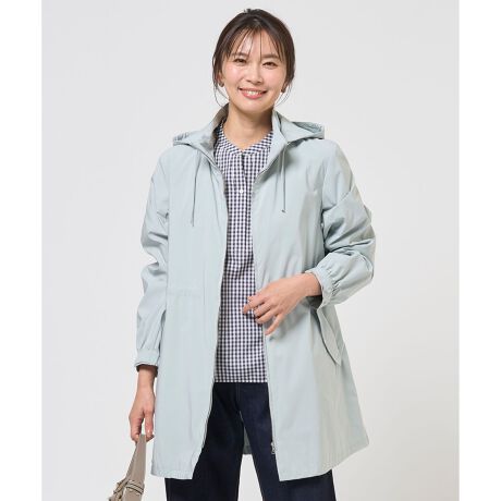 ■デザイン肌寒い季節にさっと羽織れる、軽やかな仕立てが魅力のコート。前立てから連なるスタンドカラーは、ファスナーを閉めればコンパクトに、開ければ軽やかに着こなせるデザインです。フードが取り外しできる2WAY仕様なので、きれいめからカジュアルな装いまで、幅広いスタイリングを楽しめます。ウエスト部分のドロストでシルエット調整もできます。袖口はゴムとタブ付で調節可能なため、肌寒い時期にも最適。1枚持っておくと様々なスタイルに合わせやすい頼れるアウターです。裏地なしです。