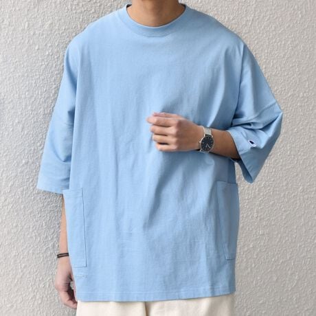 Champion別注ドルマンキャンプポケットTシャツに刺繍をプラスし、アップデート!