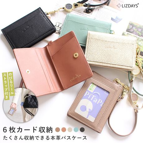外側カードポケット×2、内側カードポケット×4、リールストラップ×1(取り外し可能)