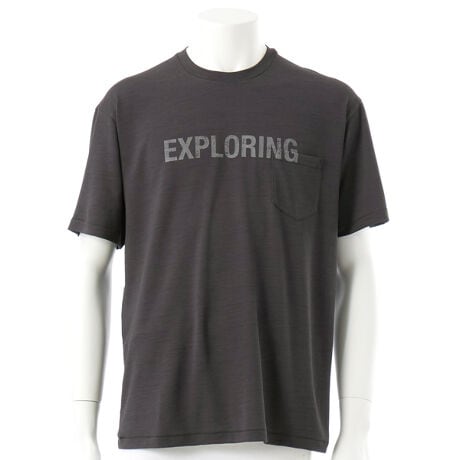グラフィックを前面にプリントし、水分を保持しないポリエステルはっ水糸を肌面に使用した半袖Tシャツ。肌面はっ水糸使いにより、汗冷え軽減効果。