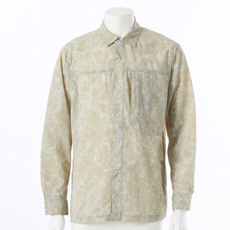 着用時の快適性を重視した、ストレッチ性の高い柔らかなソフトシェル素材のシャツ 特徴 ・脱いだ際にコンパクトに収納できる薄手のストレッチ素材・フロントは着脱が簡単なドットボタン仕様・脇のスリットは、スナップを開くと大きめのベンチレーション仕様にできる 生地・素材 ・シワ加工のこなれた風合いを持つナイロン素材・はっ水加工 機能・デザイン ・左胸に大きめのファスナーポケットを配置・裾のスリットは、スナップで開閉可能・タウンユースにもなじむシンプルなデザイン おすすめシーン ・アウトドア、登山、ハイキング