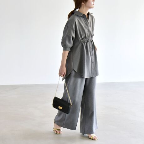 《予約》quaranciel:〈洗濯機可能〉ギャザー シャツ & イージー パンツ セットアップ