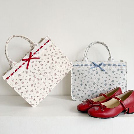 はしごリボン小花柄トートバッグ