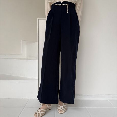 フロントのパールチェーンビットがクラシカルなストレートパンツ。