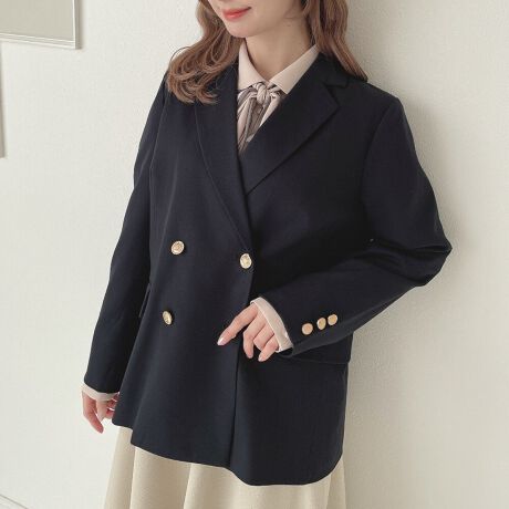 ゴールド釦をあしらったクラシカルなダブルジャケット。