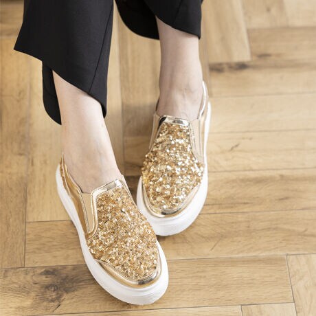 キラキラのスパンコールで存在感のある厚底スニーカー。