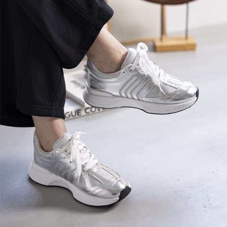 キラキラのグリッターが目を引くスニーカー。