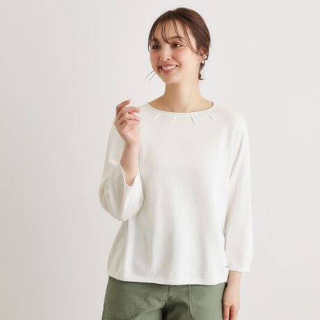 一枚で着ても、お揃いのカーディガンとアンサンブルで着ても素敵な着こなしが叶う、使い勝手のよい少しコンパクトなシルエットのラウンドネックプルオーバーです。