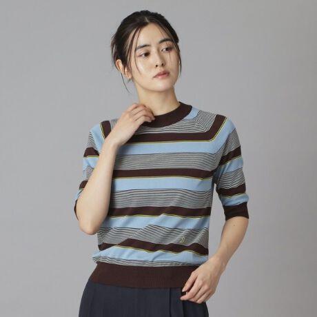 【着こなしの主役になる。マルチボーダーのハーフスリーブプルオーバー】