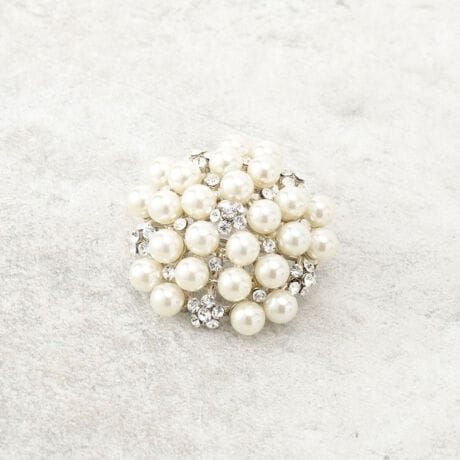 フェイクパールの立体感が際立つ、上品で華やかな存在感のあるブローチ。