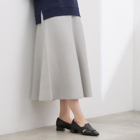 腰周りをすっきりと仕上げた、広がり過ぎないフレアーシルエットのニットスカート。