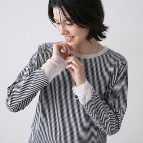シャツや春ニットのインナーにぴったりのデザインカットソーです。