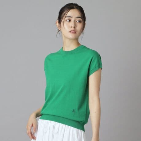 ドレステリアの春夏の定番、コットンシルクの微光沢が綺麗なハイゲージのフレンチスリーブニット。