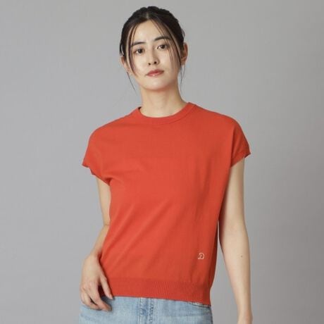ドレステリアの春夏の定番、コットンシルクの微光沢が綺麗なハイゲージのフレンチスリーブニット。