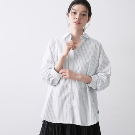 トレンドライクなオーバーシルエットのシャツは、ストライプ柄をオリジナルで作成しました。
