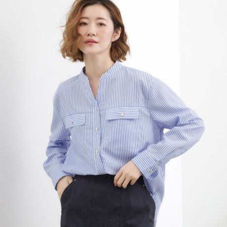 フラップ付きポケットのワークディテールを取り入れた、今っぽさのあるスキッパーネックシャツ。