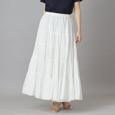 【昨年完売!再入荷 どんなトップスと合わせてもフェミニンに見せてくれる、コットンボイルのティアードスカート】
