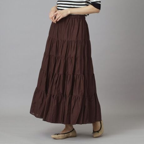 【昨年完売!再入荷 どんなトップスと合わせてもフェミニンに見せてくれる、コットンボイルのティアードスカート】