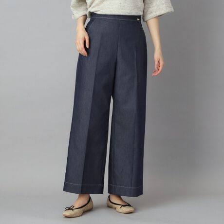 【冷感効果あり!色落ちしないデニムできれいめスタイリングが叶うワイドパンツ】