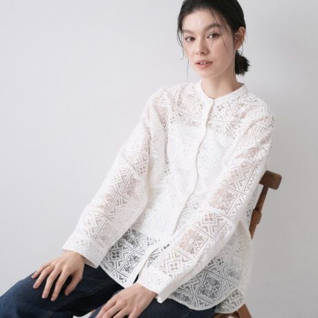 レースはスクエアモチーフのものを選び、甘くなりすぎず大人の方にも着て頂けるレースシャツを目指しました。