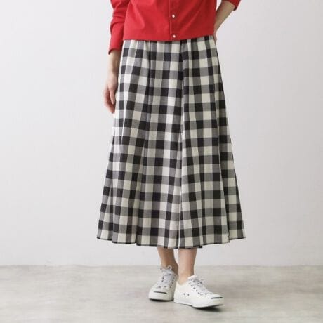 広がりすぎない分量感に、縦ラインを意識したタック使いで、歩くたびに軽やかな印象に。