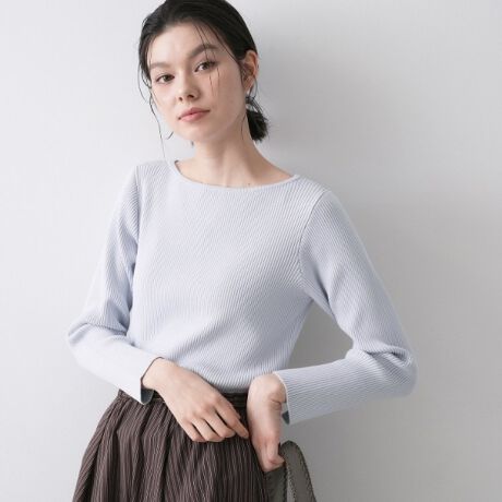 1枚着でも様になる、薄手すぎない程よい肉感のリブニットです。
