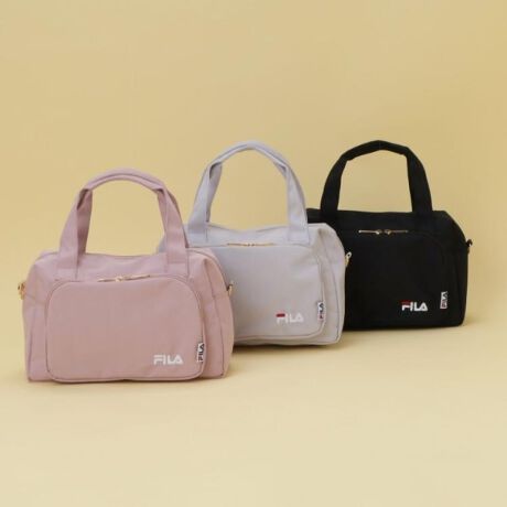FILA別注のポリキャンバス素材のラウンドフォルムが新鮮なボストンバッグ。