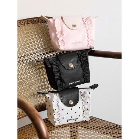 <b>フリルをあしらった新型のナイロン製ミニポーチ</b>
