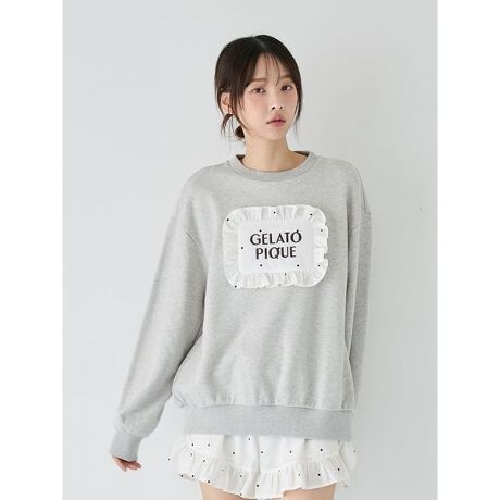 ホワイトデーや春の新生活にお届けしたい、まくらをモチーフにした癒しのルームウェアシリーズです。フロントに半立体のフリル付きまくらをデザインした、遊び心たっぷりの裏毛プルオーバー。色は3色で、オフホワイトにはギンガムチェック柄のまくら、ピンクには無地のまくら、グレーにはドット柄のまくらが付いています。微起毛素材に包まれる着心地も魅力。同シリーズの3柄フリルショートパンツや、ヘアバンドとコーディネートしてお楽しみください。