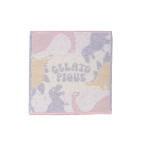 上質な今治タオルの素材を使用した、カラフルなダイナソージャガードのハンドタオル。ブルーのティラノサウルス、ピンクのブラキオサウルス、イエローのステゴサウルスに、ブランドロゴを組み合わせたgelato piqueらしいダイナソー柄になっています。同シリーズのルームウェアや雑貨と合わせたり、ギフトにもおすすめのアイテムです。
