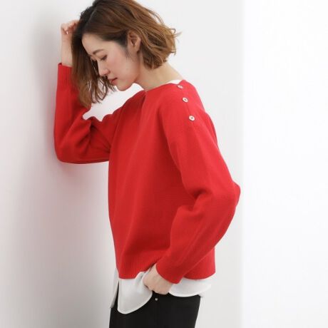 カノコ編みの表情が映える、ボートネックデザインの長袖ニットです。