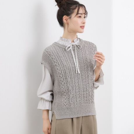 レイヤードで季節をつなぐ、軽やかなケーブルベスト。